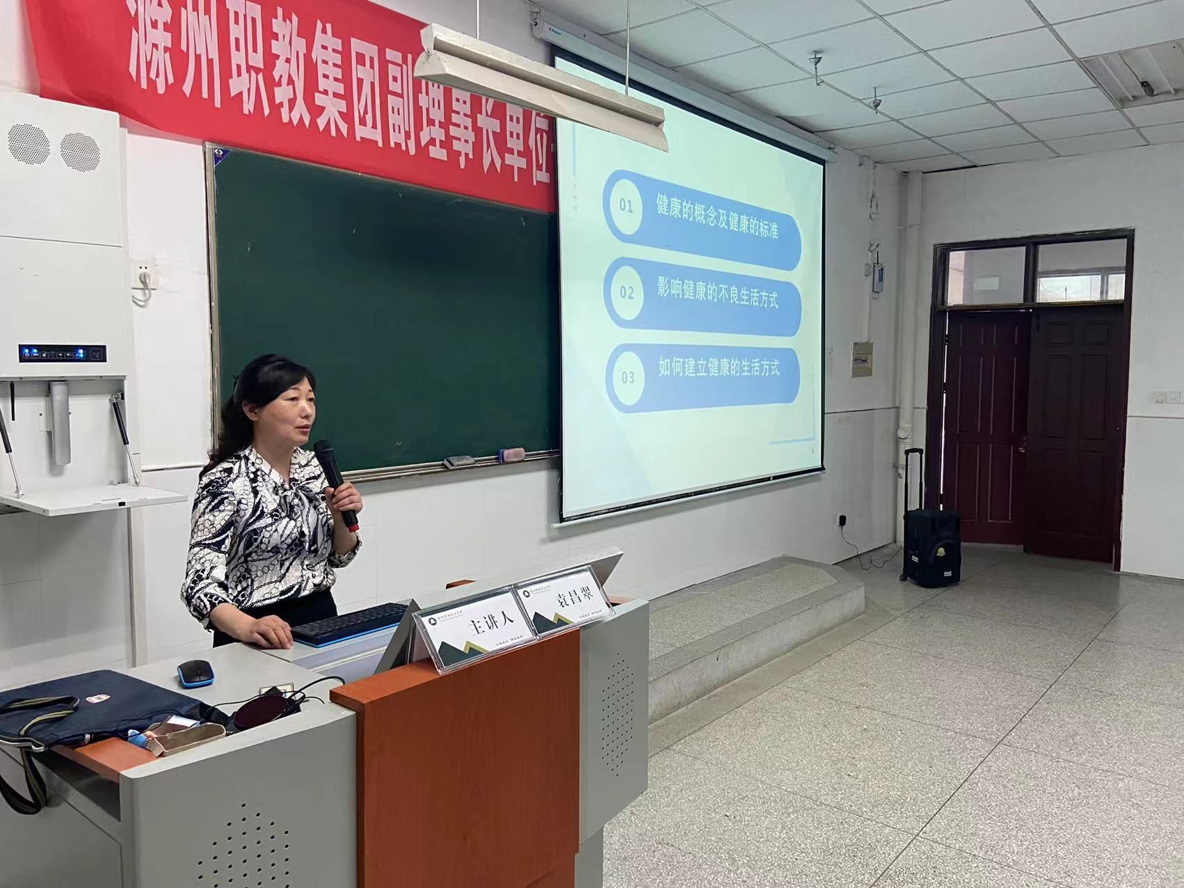 滁州市第一人民医院健康促进办公室主任袁昌翠以《生活方式与健康》为主题,从健康的概念及健康的标准、影响健康的不良生活方式、如何建立健康的生活方式等3个方面分享健康知识、“平衡膳食宝塔”、吃动平衡和建立健康的生活方式等内容,旨在促进和引导广大学生养成良好的卫生习惯,增强食品安全意识,强化合理膳食理念,提升营养健康素养,做好终身健康建设。
