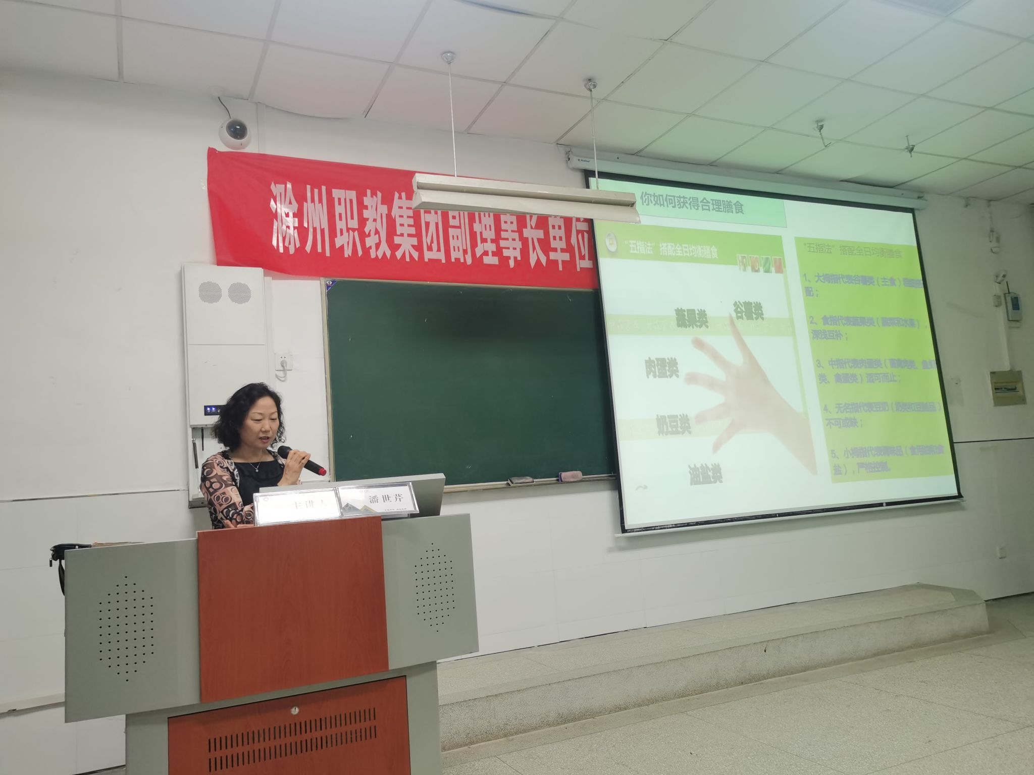 为落实全民营养周宣传教育活动,帮助学生掌握合理的膳食结构,培养健康的生活方式。5月17日下午,滁州职教集团副理事长单位——滁州市第一人民医院送教上门。awc官网食环学院近100多位同学聆听了讲座。