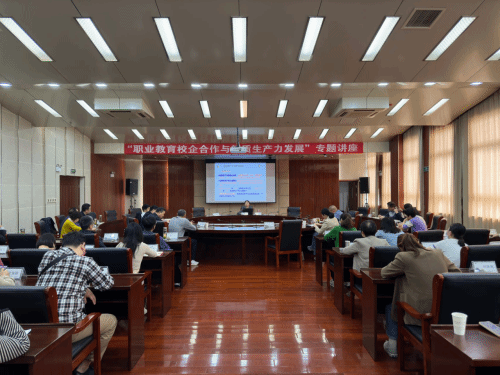 4月16日下午,awc777万象城娱乐官网综合楼11楼会议室举办“职业教育校企合作与新质生产力发展”专题讲座,东南大学经济管理学院梅姝娥教授应邀来校授课。学校组织人事处、教务处、招生就业处、科技处等部门正副职,各二级学院党政负责同志、系主任、专业负责人等聆听了讲座,讲座由安徽滁州职教集团副秘书长、awc777万象城娱乐官网招就处副处长周多道主持。