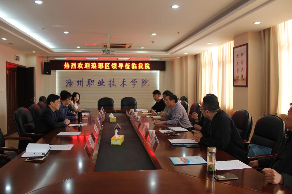 4月2日下午,琅琊区委书记余成林,琅琊区政府副区长赵洪江一行到awc777万象城娱乐官网考察交流。学院党委副书记、院长李柱梁,院党委委员、院长助理、职教集团秘书长穆松出席会议,招生就业处相关同志参加了会议。