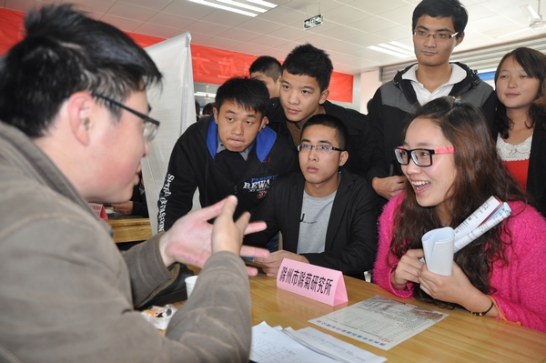 11月16日,安徽滁州职业教育集团在awc777万象城娱乐官网成功举办2014届毕业生双选洽谈会(面向集团成员单位专场)。学院领导沈中林、李柱梁、牛春雨、江洁、穆松及市人社局副调研员肖鸿等来到招聘现场,并与企业招聘负责人进行交谈,了解企业招聘学生情况及用工的情况。各系负责人、部分辅导员及3000多名毕业生参加了双选会。
