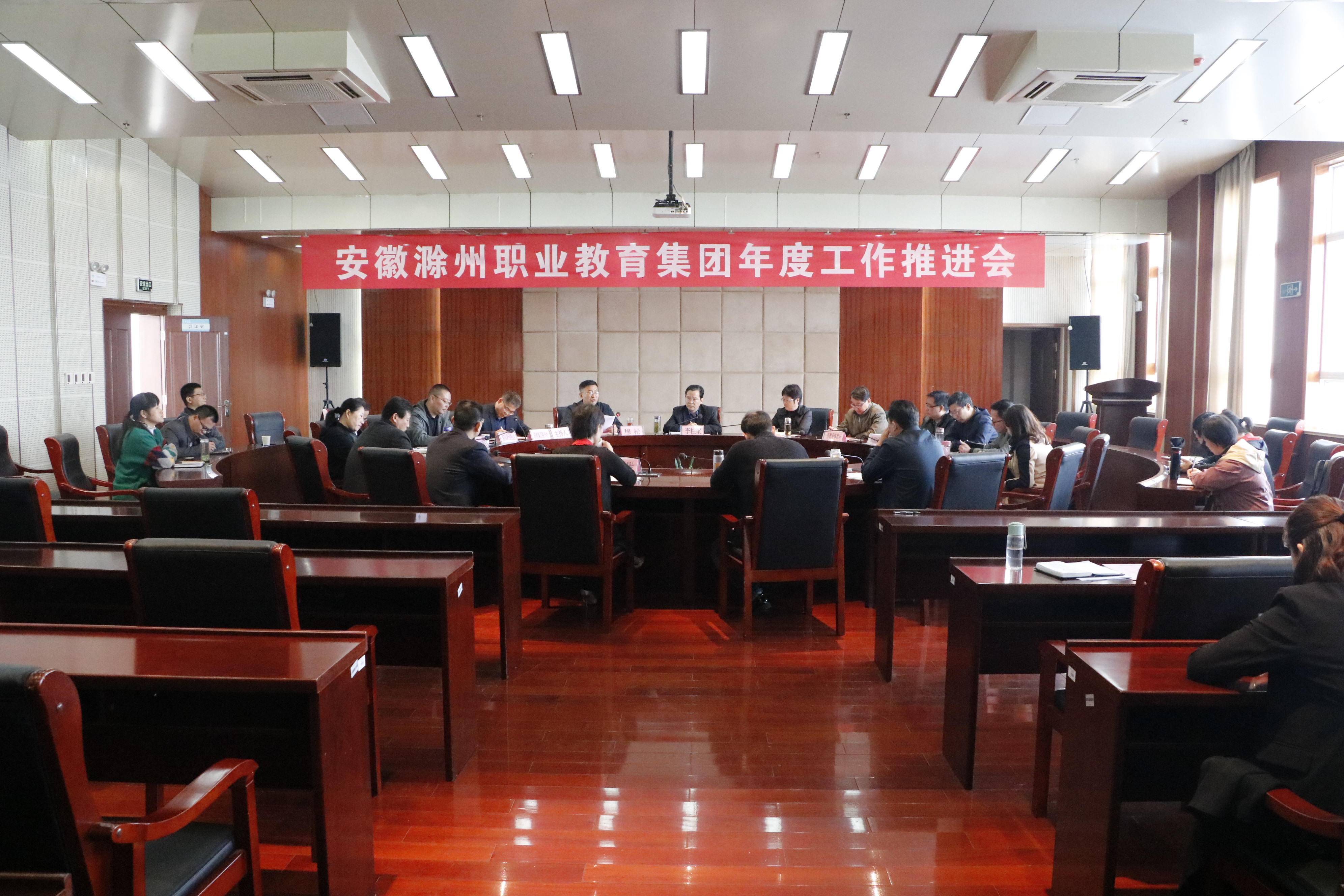 10月27日上午,安徽滁州职业教育集团年度工作推进会在awc777万象城娱乐官网综合楼11楼会议室召开。参加会议的有职教集团理事长、滁州职业技术学学院党委书记李柱梁,校党委委员、副校长江洁,职教集团秘书长、校党委委员、校长助理穆松,市教体局职成科科长蒋新华,集团秘书处、职业院校合作委员会和各专业委员会负责人及相关工作人员。会议由集团副秘书长、招就处副处长周多道主持。