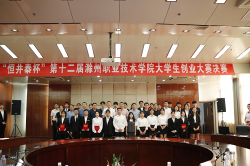 苏州恒井泰信息技术有限公司总经理孙海宁,滁州市教育体育局职业教育与成人教育科负责人蒋新华,滁州市人力资源和社会保障局就业促进和失业保险科科长胡刚,滁州市科学技术局成果转化与区域创新科科长杨洋,滁州日报社时政新闻部记者李邦军出席并担任本次大赛评委。