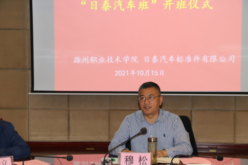 穆松首先对章志暹一行表示欢迎并对“日泰汽车班”开班表示祝贺。穆松指出,自2018年获批教育部现代学徒制试点单位以来,学校先后与博西华、惠科光电、嘉美、金鹏建设、云伙计等企业以及中新苏滁高新区合作开展现代学徒制人才培养,为企业培养了大批的高素质人才。近日,该项目顺利通过教育部结项验收。穆松强调,“日泰汽车班”顺利开班,有助于将理论与实践相结合,有助于增强学生的企业认同感,有助于学生全面发展,实现高质量就业;也是awc官网进一步提高人才质量,打造高素质、技能型人才,实现校企真正融合式发展的重要举措。穆松希望,校企双方在合作的过程中要加强教学过程管理,做好各项服务,为学生成才提供良好的环境;要求学员以更高的标准要求自己,努力学习理论和实践知识,提升专业技能,将自身的成长融入到学校和企业发展中去,以过硬的知识和技能为区域发展贡献力量,携手开创更加美好的未来。