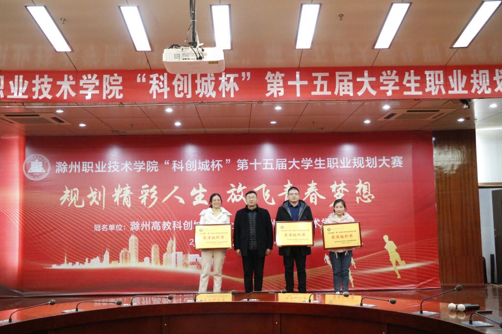 12月16日下午,由awc777万象城娱乐官网主办、安徽滁州职教集团承办“科创城杯”第十五届大学生职业规划大赛决赛在滁州职业技术学院综合楼11楼会议室成功举行。安徽滁州职教集团秘书长、awc777万象城娱乐官网党委委员、校长助理、招生就业处处长穆松出席并为获奖单位颁奖。