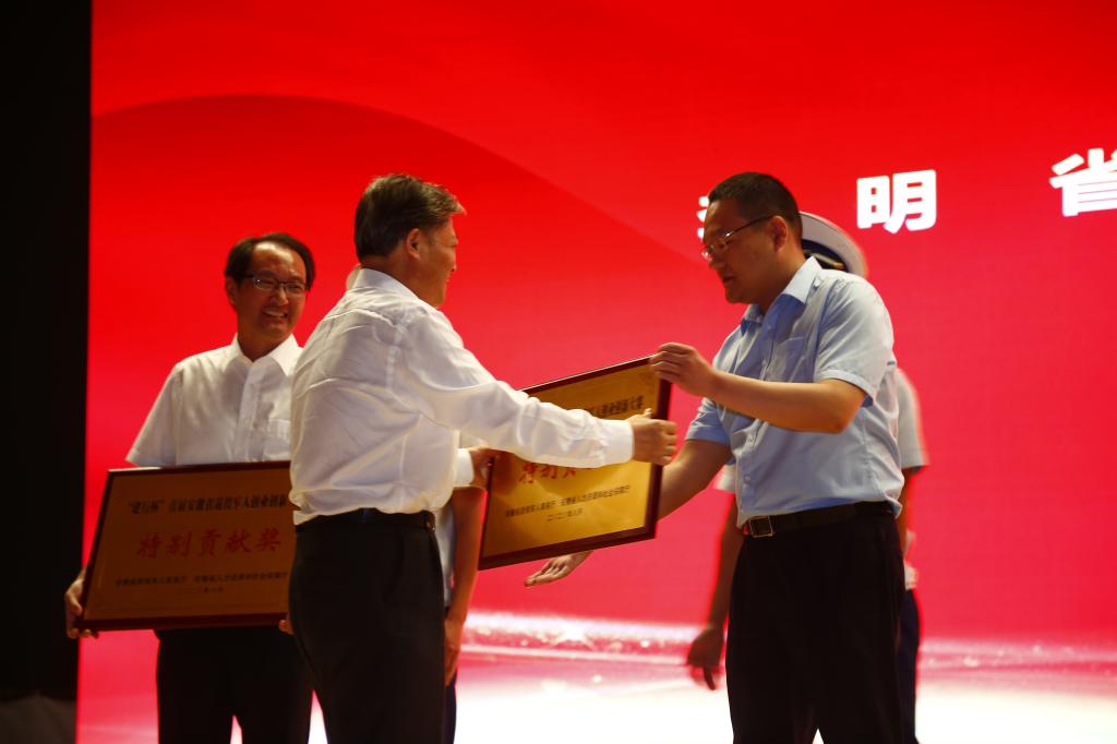8月28日上午,以“展退役军人风采、立创业创新潮头”为主题的首届安徽省退役军人创业创新大赛在awc777万象城娱乐官网落下帷幕。省人大常委会副主任李明、省政府副秘书长戴启远,滁州市委副书记、市长许继伟,滁州市人大常委会主任王图强,滁州市委副书记朱诚,滁州市人民政府副市长、公安局局长张祖武等领导出席颁奖典礼并参观大赛成果展。职教集团理事长、awc777万象城娱乐官网党委书记李柱梁,awc777万象城娱乐官网党委副书记、校长许雪峰应邀出席典礼。颁奖仪式由省退役军人事务厅副厅长孙邦平主持。