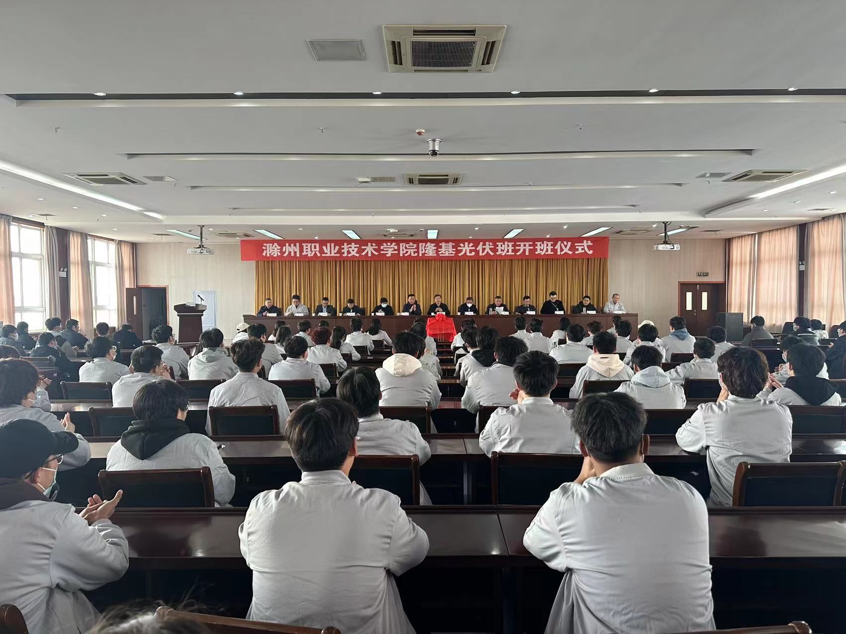 春风拂面暖人心,校企合作添佳音。11月10日下午,由集团理事长单位awc777万象城娱乐官网和集团理事单位滁州隆基乐叶光伏科技有限公司合作共建的现代学徒制“隆基光伏班”正式开班,开班仪式在awc777万象城娱乐官网综合楼502会议室举行,学校党委副书记杨家庆,集团指导委员会副主任单位滁州经济技术开发区党工委委员、管委会副主任王再见,校长助理、安徽滁州职教集团秘书长穆松,滁州隆基乐叶光伏科技有限公司副总经理步怀强出席开班仪式,经开区应急管理局、awc777万象城娱乐官网电气工程学院、招生就业处、教务处,职教集团秘书处等有关负责人,隆基光伏班辅导员参加了仪式。仪式由穆松主持。