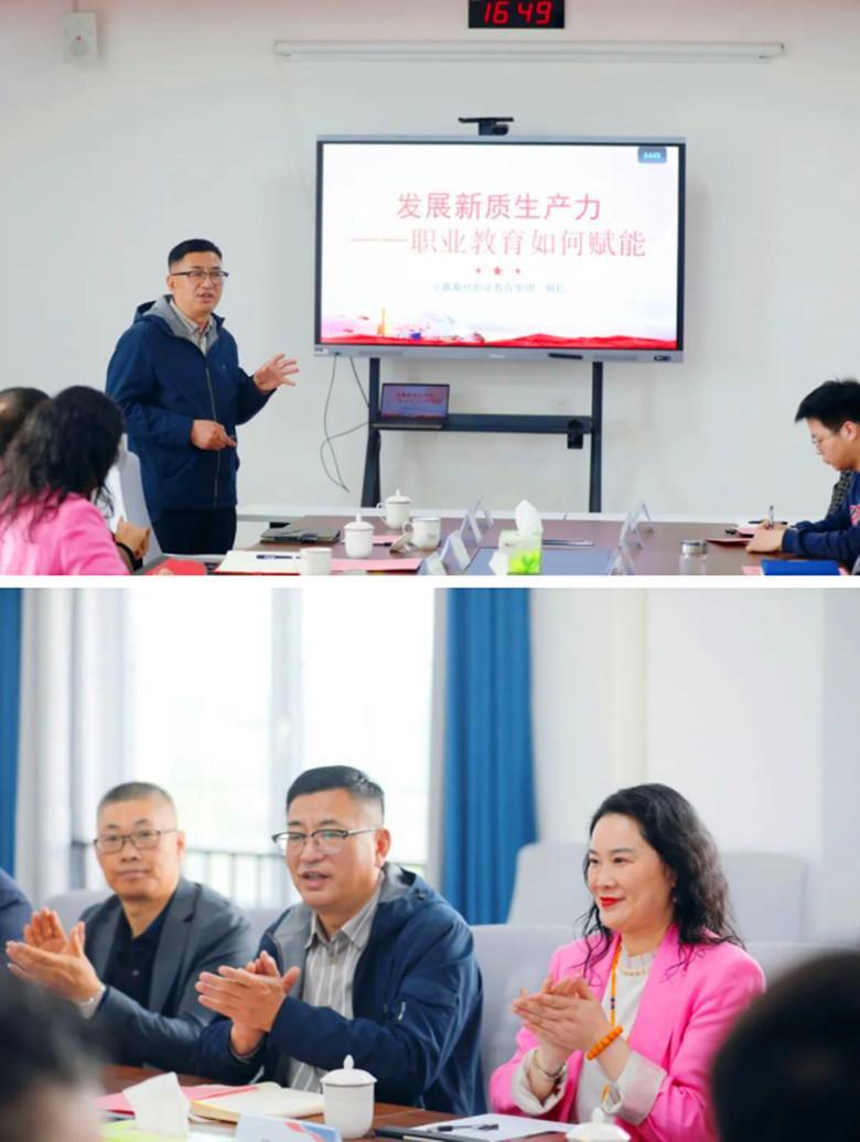 交流活动后半段,穆松就“发展新质生产力——职业教育如何赋能”主题做报告,报告中详细阐述了当前经济社会发展与职教之间关系,为企业与学校的协同发展提供了新的思考。