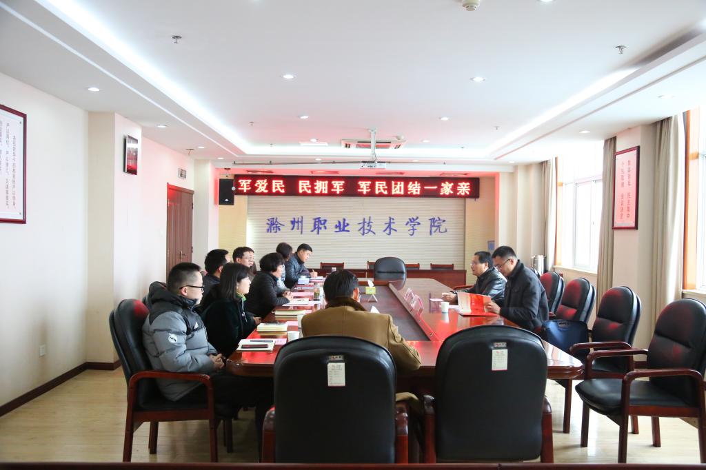 1月18日上午,由滁州市民政局副局长梁茂生、双拥办中校季海港组成的滁州市双拥模范单位考评验收组第一组来我院检查双拥工作开展情况。院党委副书记、纪委书记刘树俭,院党委委员、副院长吴大明,办公室、学生处、团委相关人员参加了座谈会。
