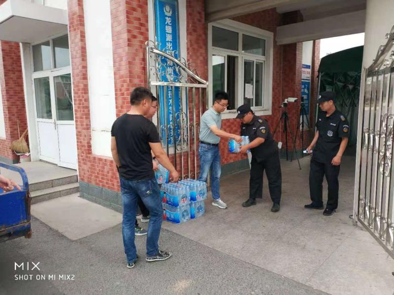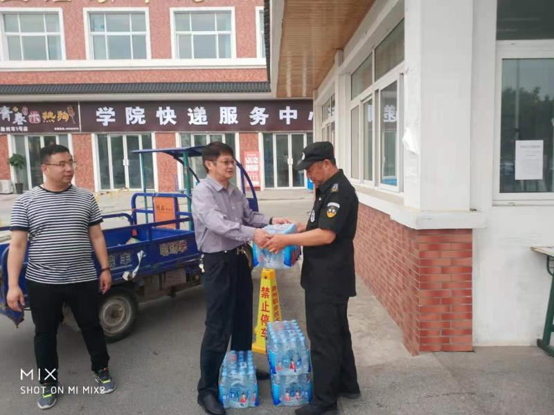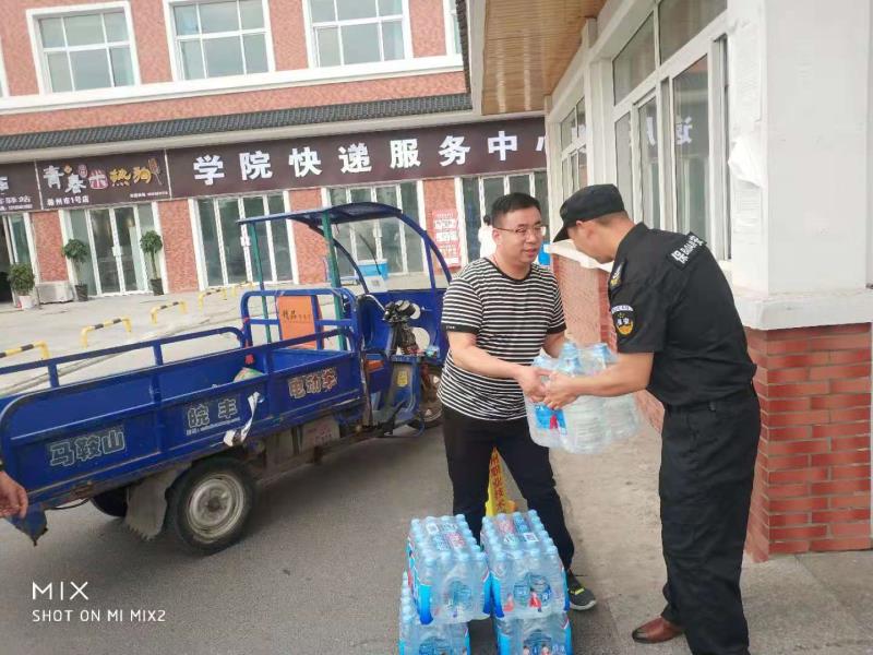 时至六月,天气炎热,安保人员24小时在岗执勤,2021年6月 24日,安全保卫处贺建邺处长和安徽酒典贸易有限公司总经理王斌为awc官网每个执勤岗亭保安人员赠送矿泉水,为他们带来夏日的清凉,也体现了安全保卫处确实为群众办实事。