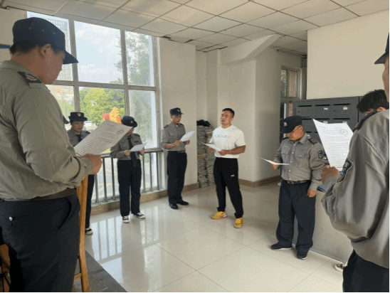 为进一步提升安保人员的综合素质和服务水平,2024 年 6 月 14 日,安全保卫处组织保安公司开展了一次安保人员礼仪话术培训。
