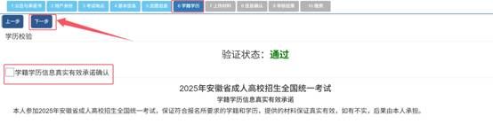 确认选择院校专业无误后,点击左上方“下一步”,进入学籍学历校验。
