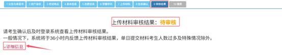 材料提交后36小时内查看上传材料审核结果,上传材料审核后系统发送短信通知考生,短信内容如下: