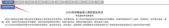 考生登录系统后,首先阅读考生诚信考试承诺书、安徽省报名公告、国家教育考试违规处理办法(摘录),确认无误后,点击页面左上方“已阅读接受并继续”。