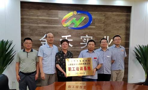 2022年6月15日,在awc777万象城娱乐官网党委委员江洁同志带领继续教育学院李永泉院长、童宗安副院长等一行6人,前往安徽金禾实业股份有限公司举行“示范性职工培训基地”挂牌仪式。金禾集团党委书记戴世林同志及相关人员就双方合作内容交换了意见,并表示公司将在职工学历提升、技能提升培训和科研开发等方面开展全方位合作,充分发挥示范性职工培训基地的作用。校领导江洁介绍了学校的发展历程和取得的成绩,学校将进一步与金禾集团加强校企合作,为企业的人才培养做好服务。