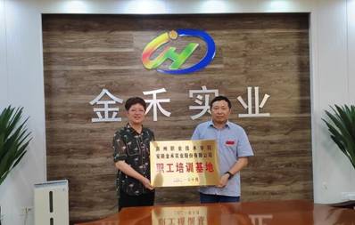 交流结束后,学校党委委员江洁与安徽金禾实业股份有限公司党委书记戴世林共同为“金禾示范性职工培训基地”进行揭牌,并签订了校企产学研框架合作协议,学校将以“示范性职工培训基地”建设为契机,一如既往的为金禾公司提供良好的教学服务,为企业的长期发展发挥教育服务职能。