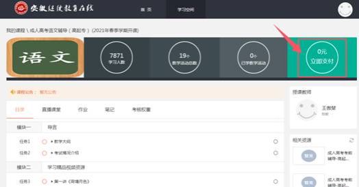 6、您若是想看课程资源,先点击右侧的蓝色背景“0元立即支付”按钮(如图9所示),则弹出“购买课程”对话框(图10所示)。