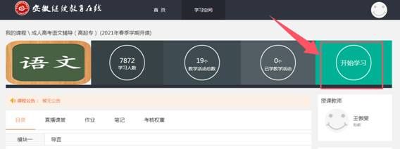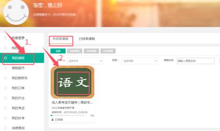 2、直接点击您要学习的课程图标,例如在这里,可以继续学习《成人高考语文辅导(高起专)课程》(如图12所示)。则进入《成人高考语文辅导(高起专)课程》资源界面。