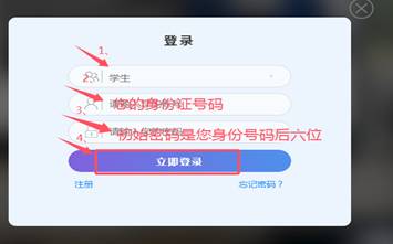 1、身份请选择“学生”,账号为身份证号码,初始登录密码为身份证号码后六位,然后点击“登录”按钮,则弹出如图5所示的对话框。