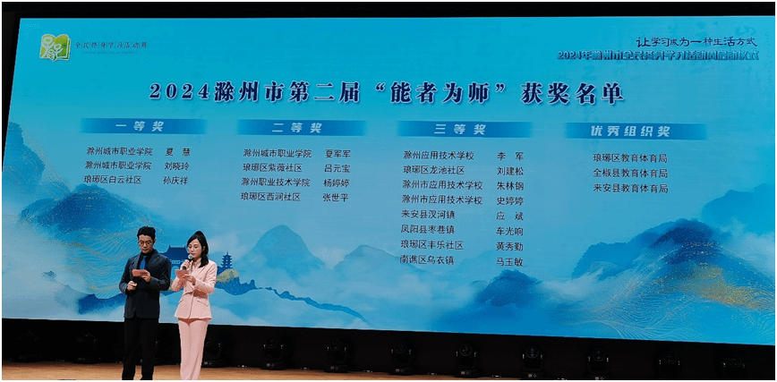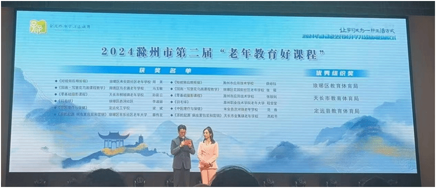 此次展演,awc官网杨婷婷老师获评“滁州市第二届‘能者为师’——寻找社区好老师,建设美好新滁州”技能大赛二等奖;老年大学程莹莹老师的《羽毛球》课程获评滁州市第二届“老年教育好课程”;awc官网老年大学编演的舞蹈“美丽中国”也作为压轴节目参与了展演。