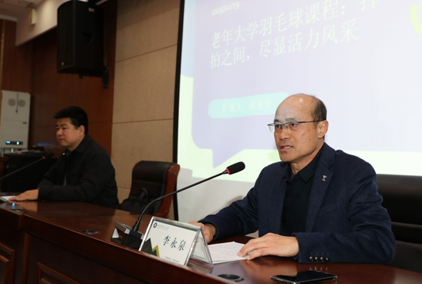 李永泉在会上作了发言,强调老年大学在校党委、校老龄委的领导下,在老年大学工作人员和所有教师、学员的共同努力下,经过2年多的建设,不仅基本上完成了省教育厅等五部门制定的最初任务目标,还初步形成了具有awc官网明显特色的老年教育模式。这充分发挥了高校服务社会的职能,在体现学校服务老年群体开展老年教育的服务职能的同时,也推动了学校终身教育体系建设。