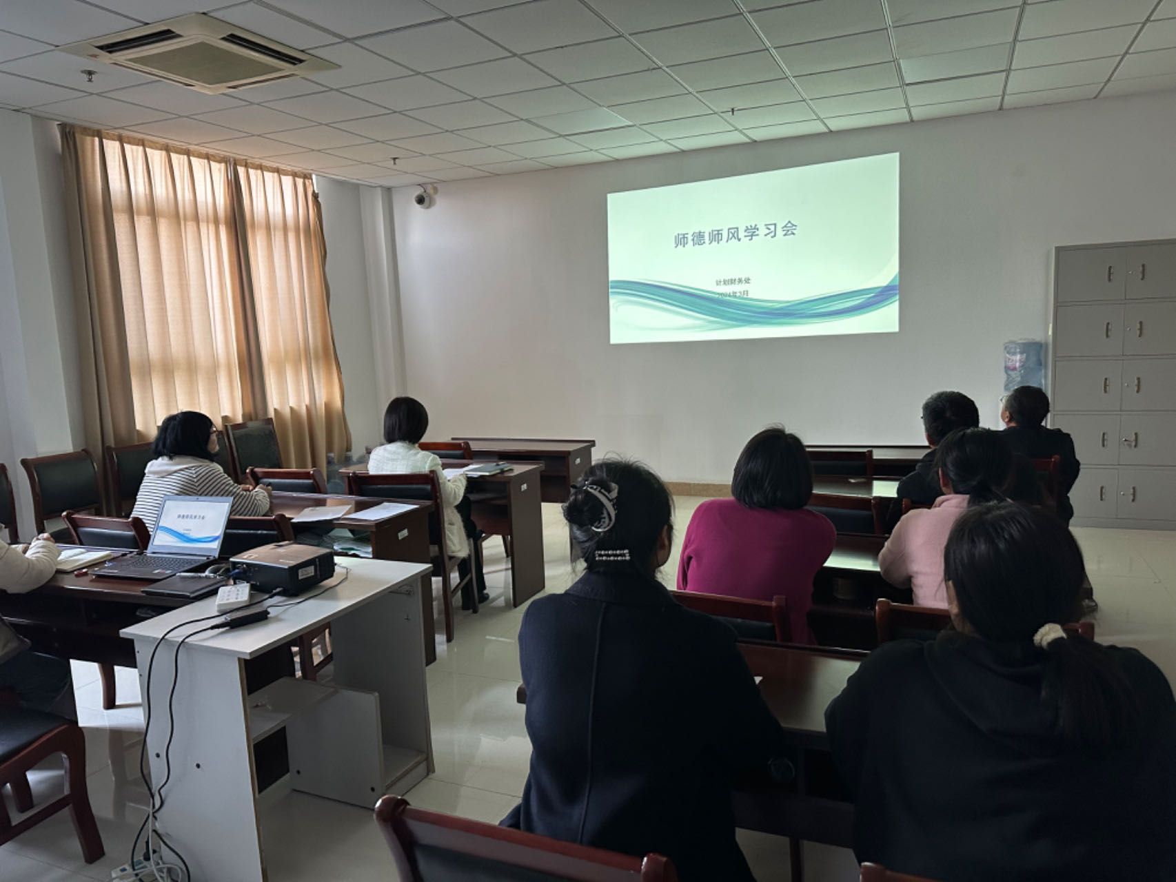 为进一步规范教师职业行为、明确师德底线,弘扬践行教育家精神,充分展现教师队伍崇高的师德风貌,3月22日计划财务处在129室召开师德师风建设提升工作会议。会议由王蓓蓓副处长主持,计划财务处全体人员参加会议。