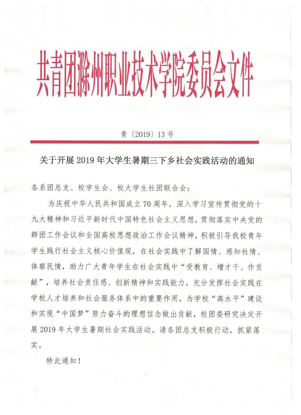 201913 关于开展2019大学生暑期三下乡社会实践活动的通知