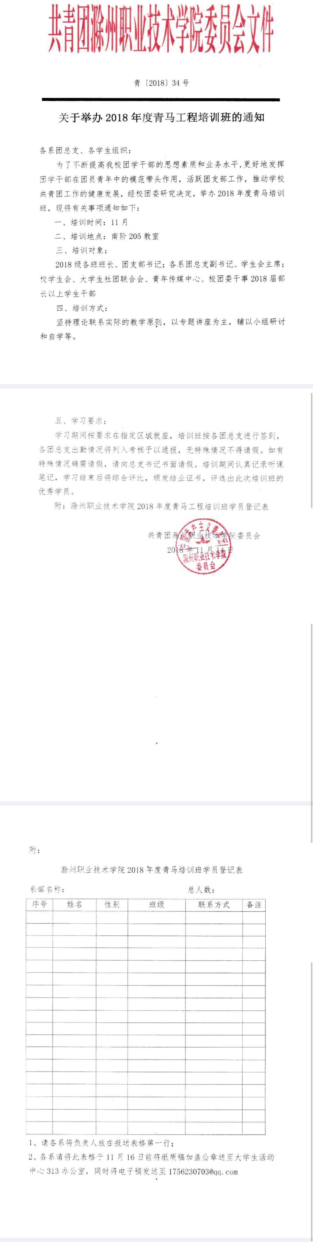 关于举办2018年度青马工程培训班的通知