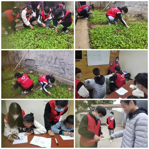 此次活动中,志愿者们提前准备了塑料袋,画纸,画笔,泡泡水与糖果为活动做准备。在抵达星星家园后,在“星星负责人”的带领下,我院志愿者们与“来自的星星”的孩子们一起在菜地里摘菜。每个志愿者手上都有一个塑料袋,用来收集星星孩子们劳动成果,让他们感受收获的喜悦。紧接着,志愿者们用自己事先准备好的道具,给星星孩子们上了一堂生动的美术课—教学画小白兔。在此期间,孩子们画的都很认真,每个人都完成了自己的画作,而且画的都很有趣且富有创意。最后,志愿者们陪伴着星星孩子做起了游戏,他们一对一的陪同孩子们在院子里进行吹泡泡比赛,看谁吹的泡泡又大又多,并且以糖果作为奖励,激励他们积极向上的心态。