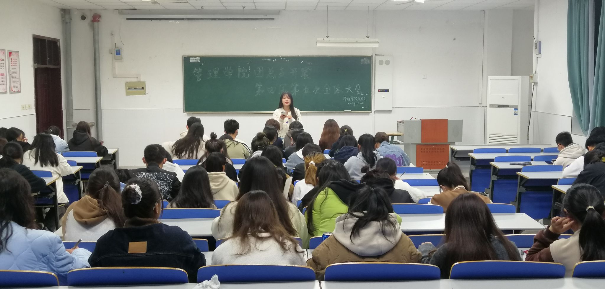 为了进一步加强团总支的组织活动管理,完善学生组织建设,推动各项工作的顺利进行。管理学院团总支于2022年11月20日6:30在致真楼1101教室开展第四届第次全体大会,本次大会由团支书副书记於美娜负责,团总支全体成员参加。