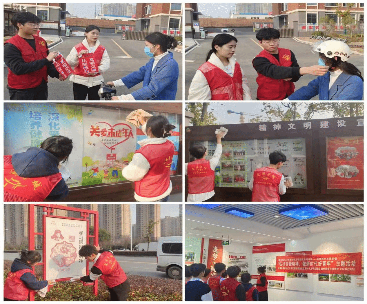 活动中,志愿者们对社区公共区域的卫生以及公告栏进行清理打扫;最后到达交通路口对来往行人和车辆进行指导,他们耐心给过往行人讲解文明出行的重要性,倡导遵守交通规则,倡导不闯红灯,宁等一分不抢三秒;呼吁大家要戴头盔,积极引导大家保持良好的遵守交通规则习惯。