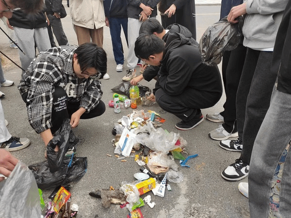 在劳动周中,全班50人共分为5个小组,由班委任组长。各小组围绕学校周边徒手捡垃圾。然后各小组对捡来的垃圾进行了仔细分类,在垃圾分类时,有的同学还辨识不清哪些垃圾属于可回收垃圾,尤其是外卖盒、奶茶杯等。于是辅导员就给大家现场普及了垃圾分类的知识,并倡导大家在宿舍自觉进行垃圾分类投放,尽量不叫外卖以减少制造垃圾。同时要养成不乱丢垃圾的好习惯,更要尊重别人的劳动成果。