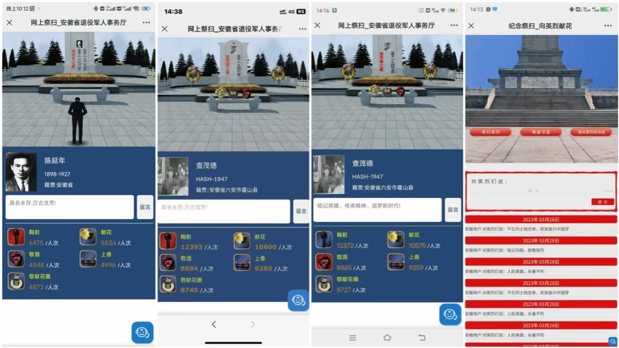 活动期间,各团支部干部积极带领同学们参加清明祭扫活动,同学们通过登录“江淮祭英烈”平台参加网上祭扫英烈活动,在网上向先贤先烈鞠躬献花、发表祭奠感言、抒写心声。