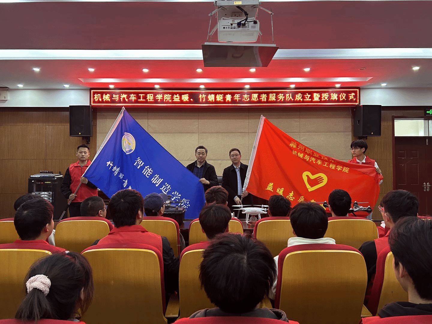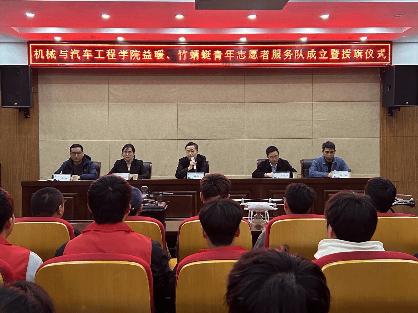 青春勇担当,志愿正当时。此次授旗仪式见证了机械与汽车工程学院益暖、竹蜻蜓青年志愿者服务队的成立,传递了新时代志愿服务精神。我院将继续开展有意义、有特色的志愿服务活动,吸引更多青年学生加入到志愿者队伍中来,引导他们真正成为志愿精神的宣传者、实践者和传播者。