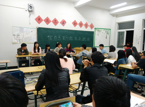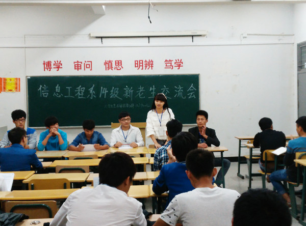10月12日晚,信息工程系举行了一场别开生面的新老生交流会,分专业在七个教室同步开展。本次活动由信息系学生会精心策划,旨在帮助14级新同学以更好精神状态融入到大学生活,构建一个新生与老生的交流平台,增进新老生之间的友谊。