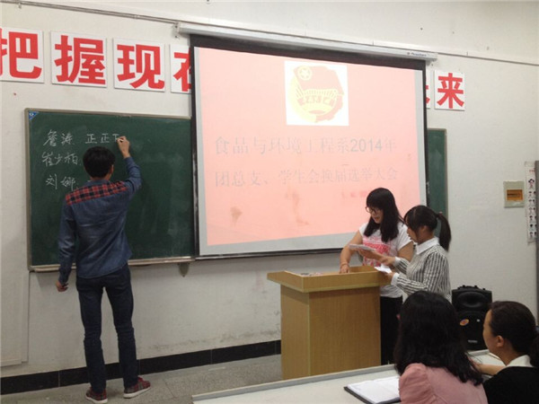 2014年换届工作的圆满完成,为食品系十一后团总支学生会招新、日常学生管理及校园文化建设等工作打下基础。希望换届与招新的东风能让食品系团总支、学生会学年工作迈上新台阶、展示新形象。