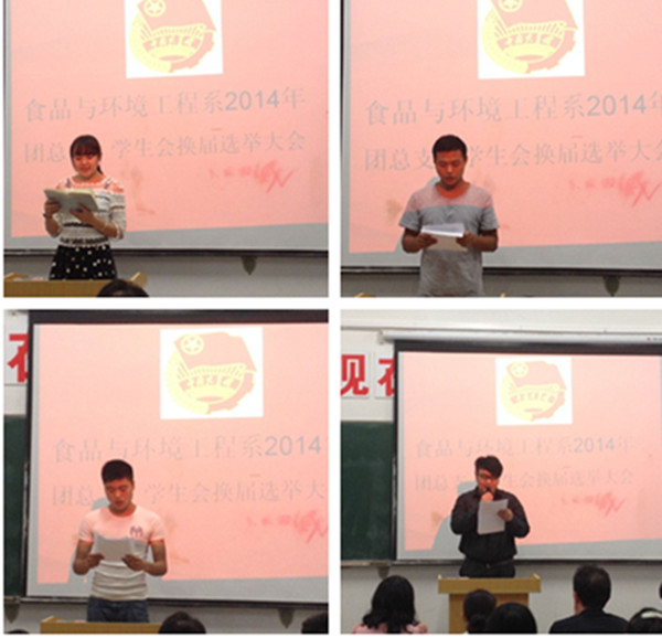 此次食品系换届选举工作在集中的基础上充分发扬民主,坚持公开公平公正的原则,各年级辅导员积极参与候选人推荐并参与投票,为换届工作提出很多宝贵的意见建议。选举中,各位学生候选人通过竞选演说,将自己学识风度、工作规划充分展现在众人面前。
