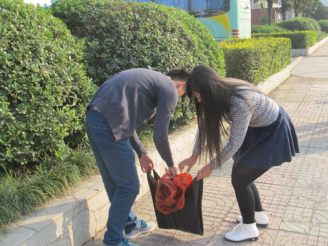 清理路边草坪里的垃圾