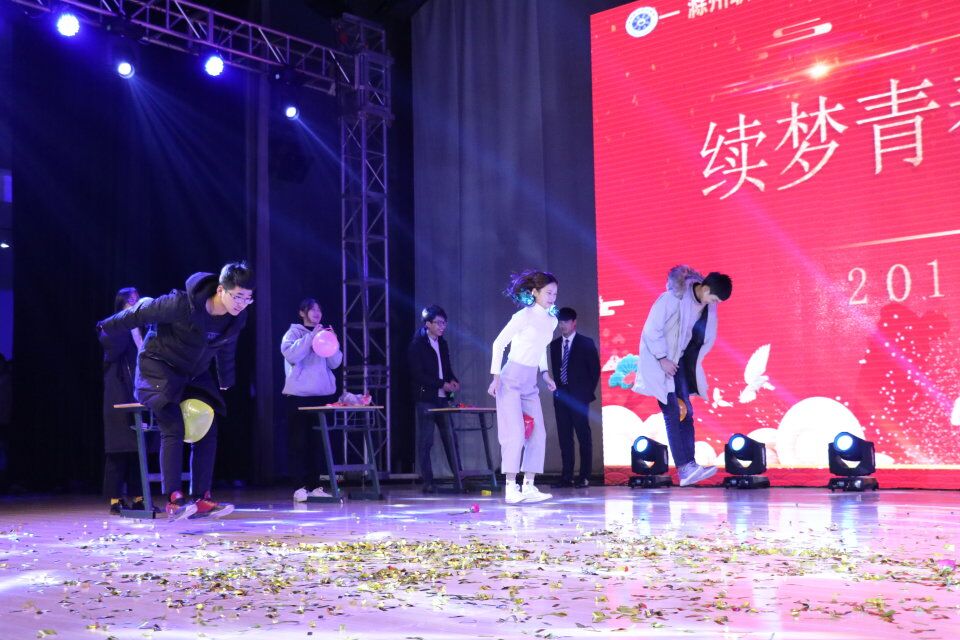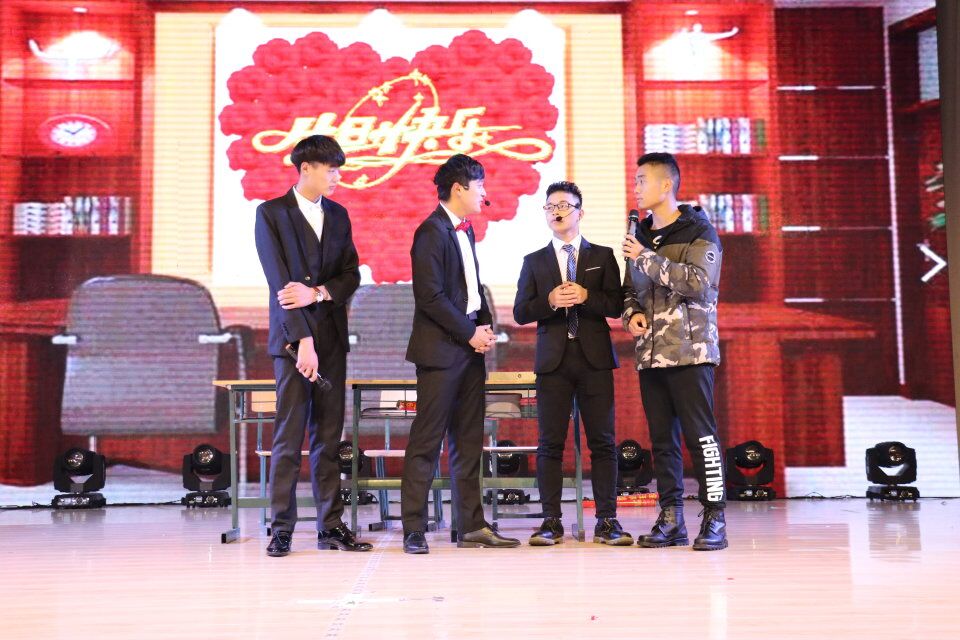 当晚7:00,晚会开始,观众陆续入场。在颇富激情的开场舞之后,主持人正式宣布晚会开始。晚会节目丰富精彩,有青春活力的《舞蹈串烧》和《群魔乱舞》舞蹈,独特的节目道具和活力四射的舞蹈组合,为观众带来了别样的视觉盛宴,出色的表演更是得到了观众们的欢呼声和掌声。小品《喜从天降》和《浪漫满屋》更是掀起了晚会的高潮,浪漫的场景渲染和妩媚多姿的“大奶奶”获得了全场观众的欢声笑语。随后小品《爱情博物馆》带领观众穿越一个又一个时代,讲述一个又一个浪漫的爱情故事,将他们的快乐和幸福传递给观众。在游戏环节中各系学生代表积极参与,全场都为他们加油助威。