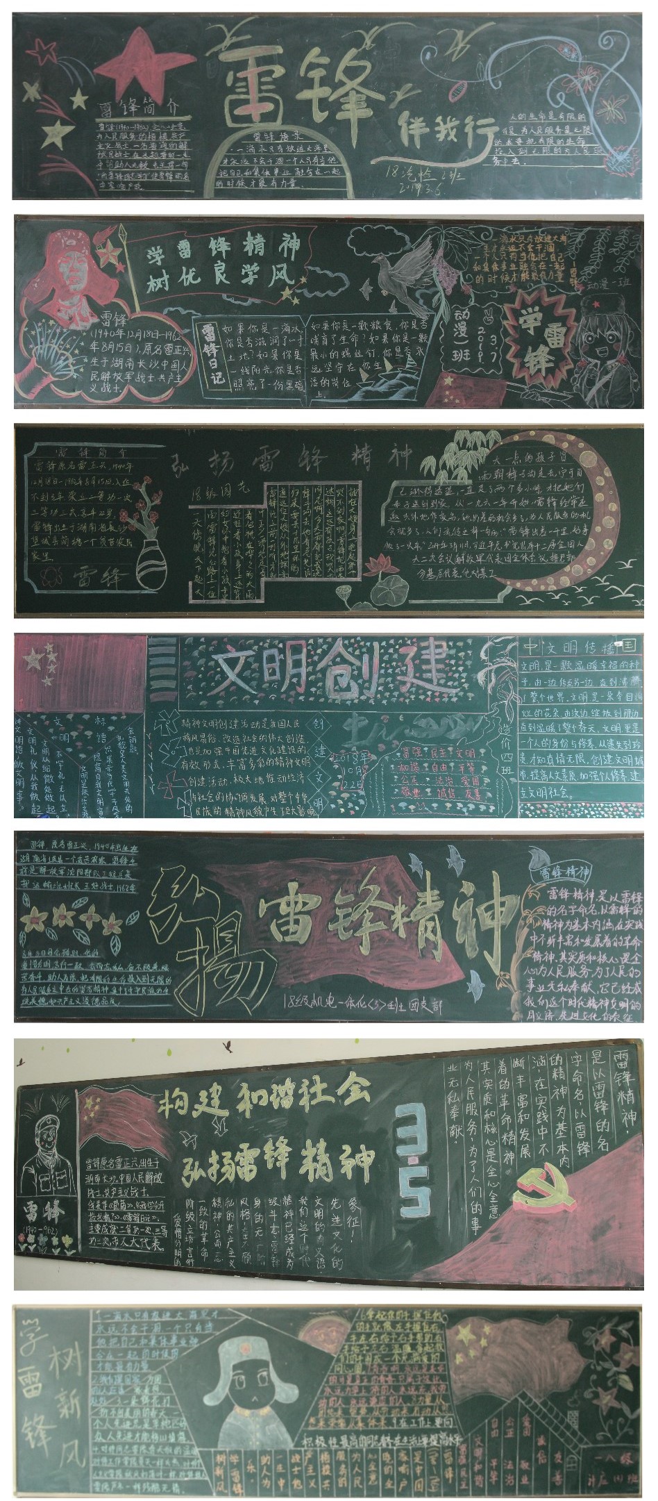 本次黑板报评比活动,不仅加深了同学们对雷锋精神的认识,了解了雷锋精神的精髓,而且展示了班级风采,同时更巩固和促进了学校班级文化和校园文化的建设,让黑板报成为美丽校园中一道靓丽的风景线。