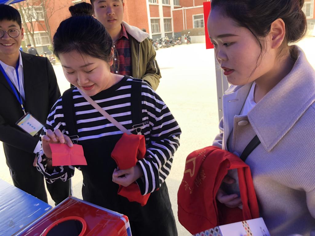 活动开始前,学生会成员在女生宿舍一号楼前搭趣味抽奖棚,准备抽奖箱,并设定抽奖幸运数。活动伊始,工作人员把女生引导进帐篷内,向女生介绍活动内容以及活动目的,随后就由女生在抽奖箱内抽取数字,若女生抽到数字407可以获得精美吊坠一个、抽到数字307可以获得布娃娃公仔一个、抽到数字37即可获得终极大奖蛋糕一份。经过一上午的抽奖,礼品陆陆续续都已送出,不少女生都收到了一份惊喜的节日祝福。