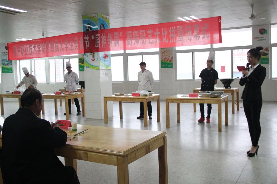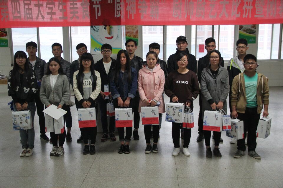 2016年4月20日下午,第四届大学生美食节闭幕式暨“厨神争霸赛”在新食堂三楼火热开赛,这标志着历时一个月的第四届大学生美食节即将落下帷幕。院团委书记王蓓蓓,后勤服务公司副总经理王立新,后勤老师胡永光、杨车喜、王书杰和各系学生代表观看了比赛。