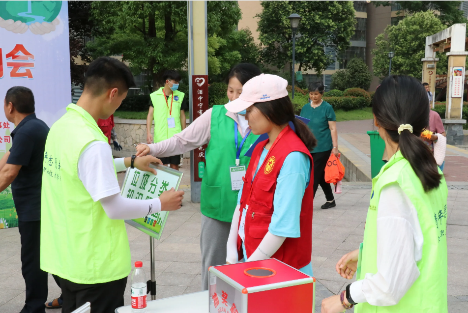 为迎接世界环境日的到来,提升市民对垃圾分类的知晓度,引导市民养成垃圾分类生活习惯,6月4日下午,共青团滁州市委、滁州市城市管理行政执法局、龙蟠街道办事处,在文昌花园小区内联合举办了“我为群众办实事”之垃圾分类趣味运动会——六五世界环境日宣传活动。校团委殷涛老师带着awc官网25名“小青亭”担任了此次垃圾分类趣味运动会的志愿者。