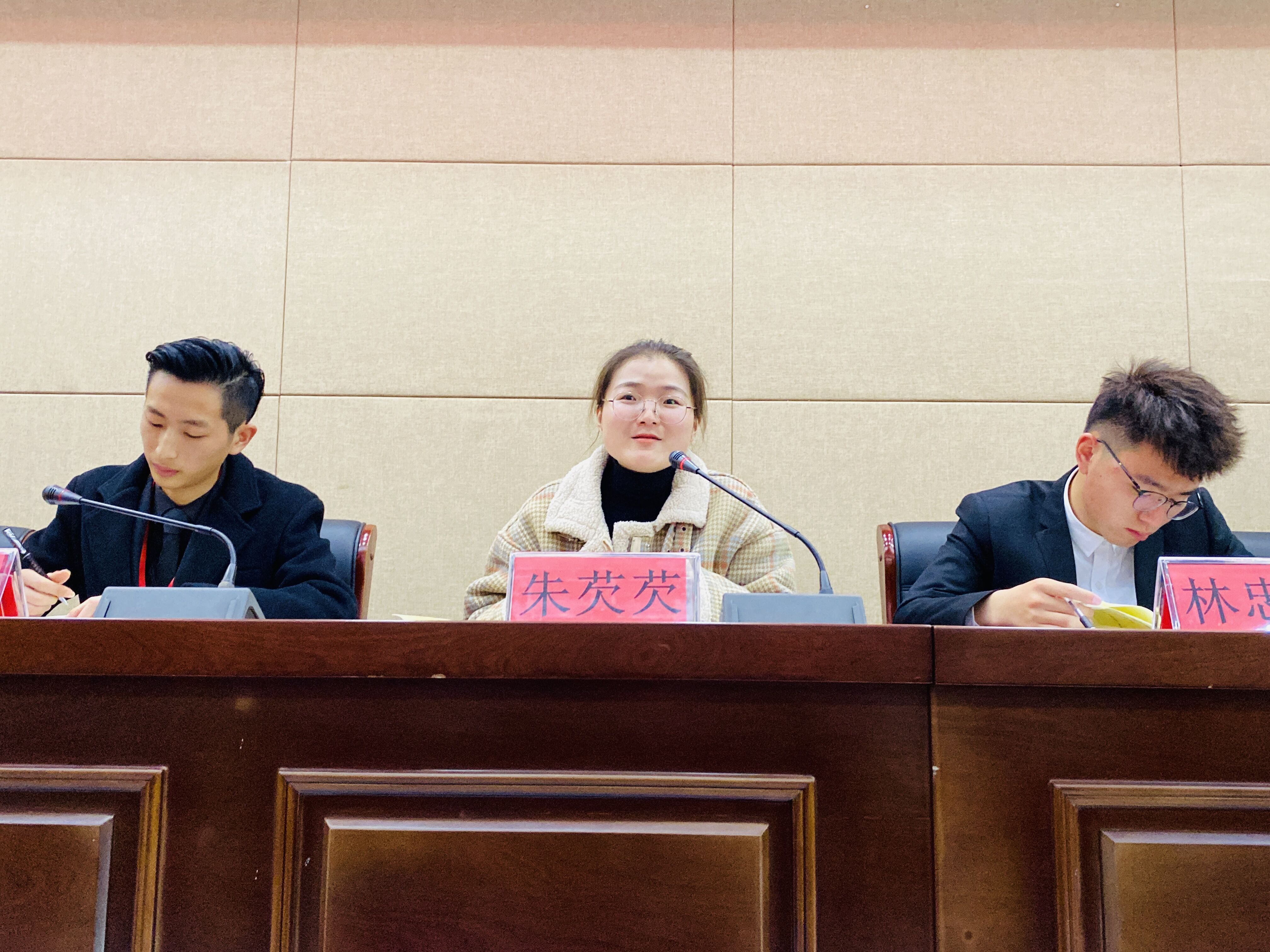 大会第三项,由团委老师朱芡芡进行了总结与点评,她首先对学生会上学期开展相关工作进行了肯定,其次对这学期相关工作的开展提了要求,最后她希望学生会的同学在新的学期能够再接再厉,撸起袖子加油干,为新学期谱写新篇章。