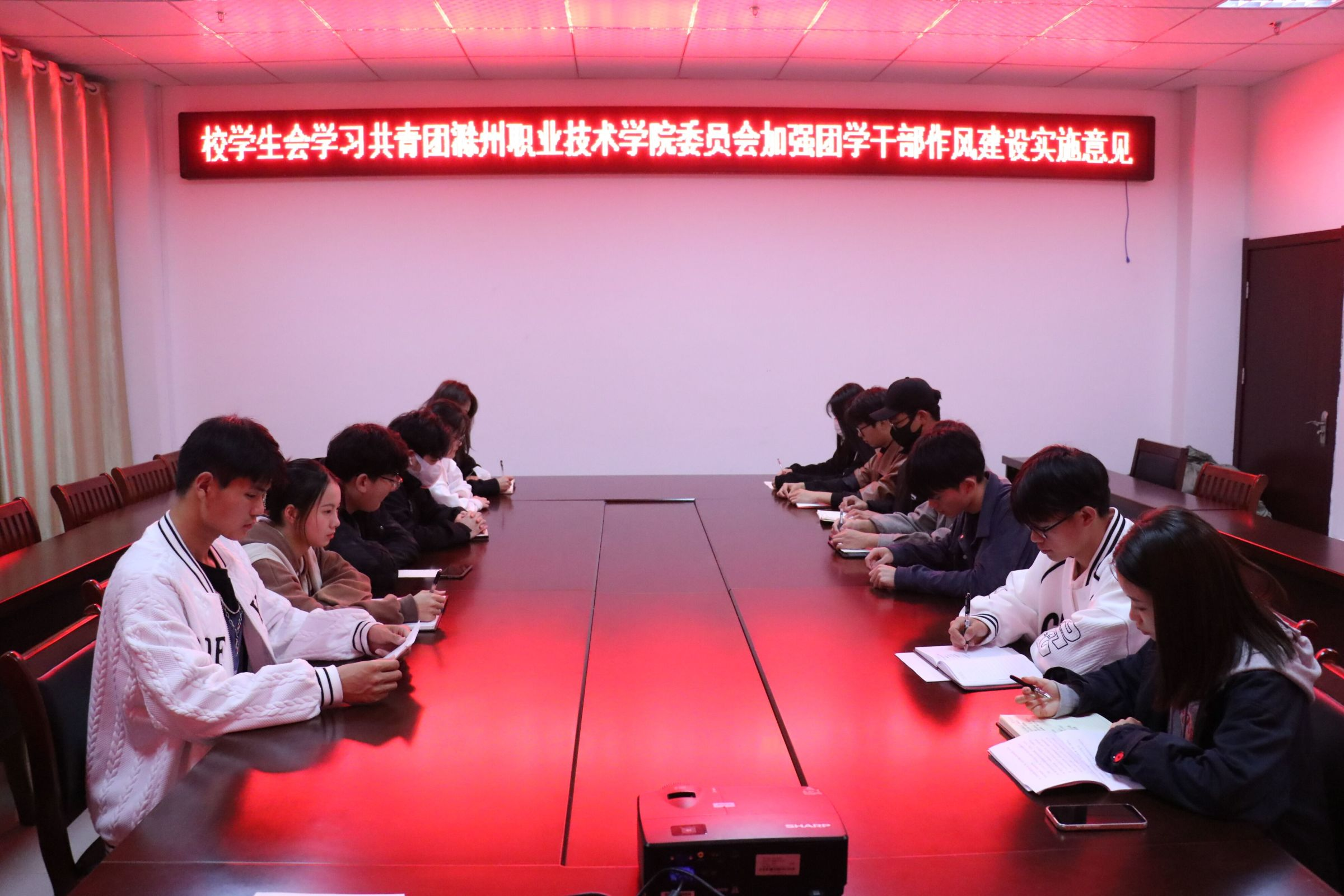 会议开始,参会成员集体学习《共青团awc777万象城娱乐官网委员会加强团学干部作风建设实施意见》《校学生会管理制度》等文件。随后,由主席团成员和各部门部长结合各自职责和部门现状进行发言和表态。接着,大家针对校会目前存在的问题一一进行剖析,并提出整顿措施。最后,校会指导教师再次强调团委学生会的宗旨是要为学生服务,要持续开展作风建设,要尽快将学生干部作风问题意见征集邮箱、“你说我听”摆摊活动等落到实处,切实规范校会的管理。