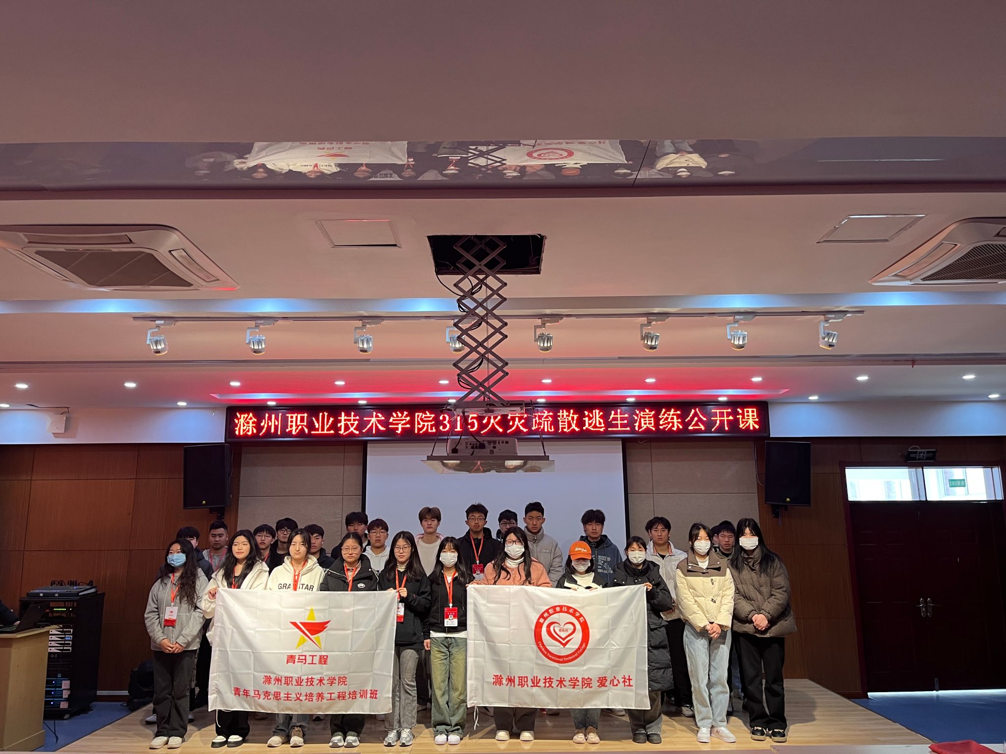 3月15日9时,awc官网团委组织青马班、学生会、爱心社同学集体观看由教育部、国家消防救援局联合举办2024年春季学校火灾疏散逃生演练公开课。