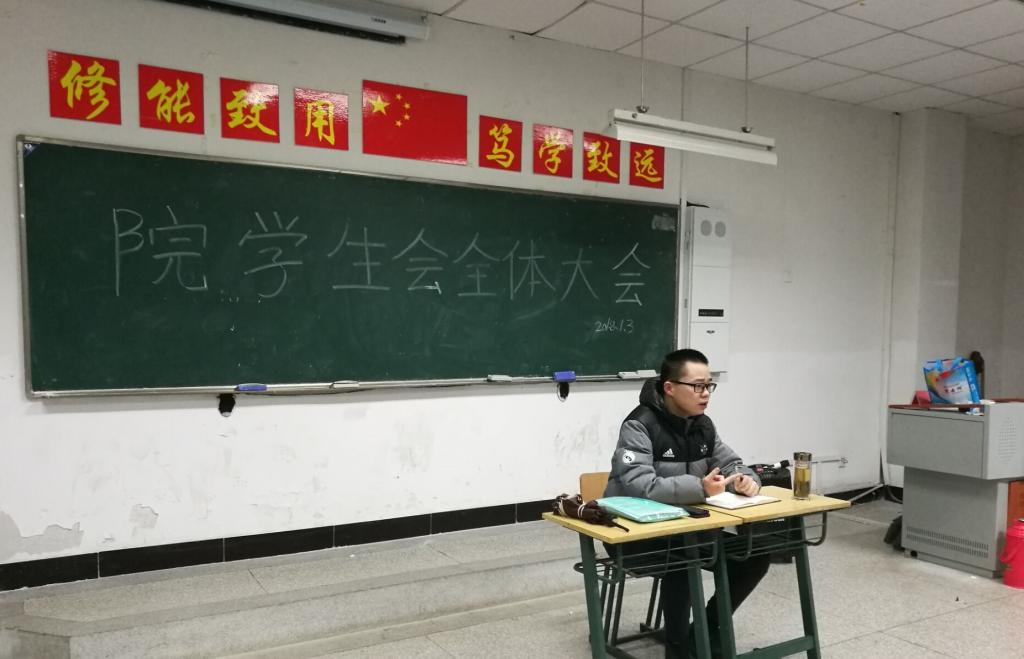 鸡舞司晨早,犬蹲守夜勤。为在2018年推动我院学生会工作更长久的发展,明确学生干部下一阶段工作及计划。awc777万象城娱乐官网学生会于2018年1月3日下午召开了全体会议,参加本次会议的有院团委副书记何堃以及院学生会全体成员。