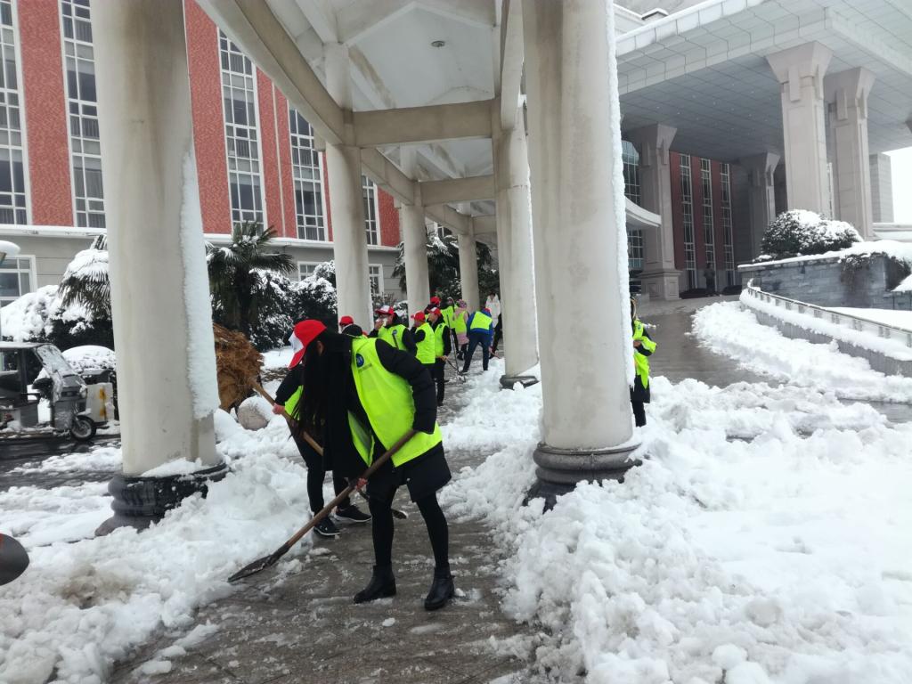 为尽快消除大雪给师生工作学习造成的影响,确保师生在校的安全和教育教学的正常进行。院党委委员、副院长吴大明要求我院志愿者积极开展“除雪、护树、开路”志愿服务活动。1月4日至5日,我院“小青亭”志愿者积极响应院领导号召,开展冬季清扫积雪志愿活动。