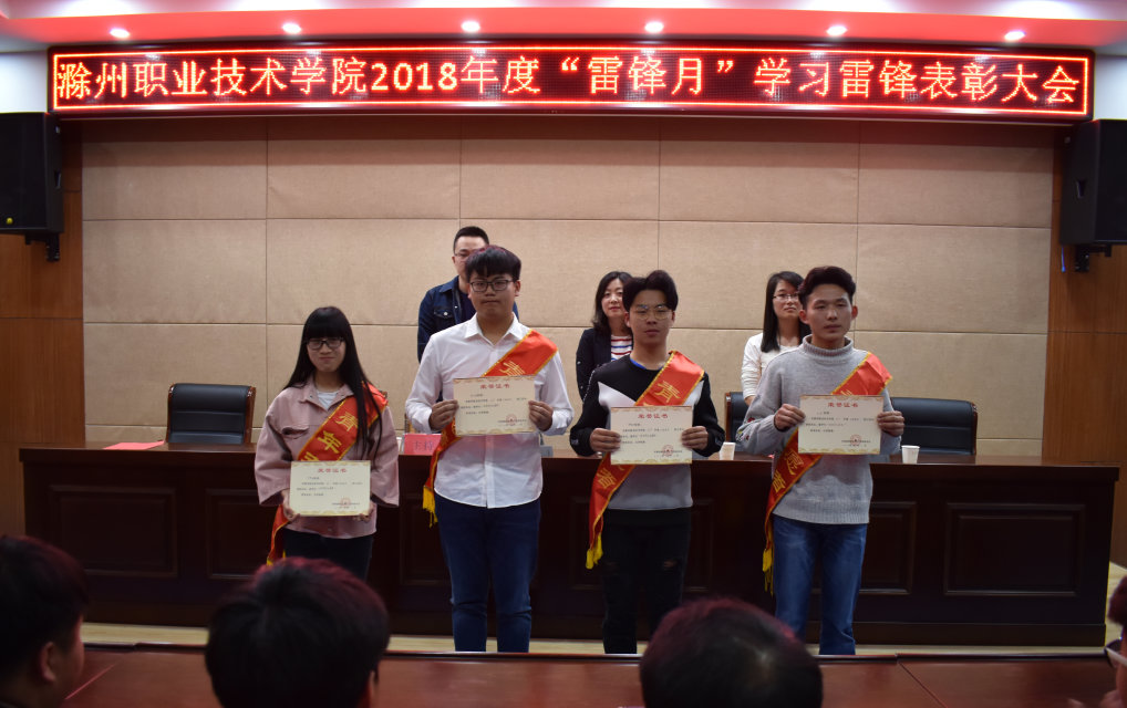 会上,院团委副书记何堃宣读了《awc777万象城娱乐官网2018年度“雷锋月”学习雷锋先进集体、优秀个人和优秀特色志愿者项目表彰决定》。经济贸易系青年志愿者分会、汽车工程系青年志愿者分会获评先进青年志愿者分会,“守护琅琊山”、“关注生态环境,打造有机茶园”项目获评优秀特色志愿项目,褚志康等110名同学获评优秀青年志愿者。与会院领导为获奖集体、项目与志愿者代表颁发了荣誉证书。在获奖代表交流过程中优秀志愿者代表褚志康,优秀志愿者分会指导老师朱婷婷先后发言,分享交流了在志愿服务中的经验与收获。