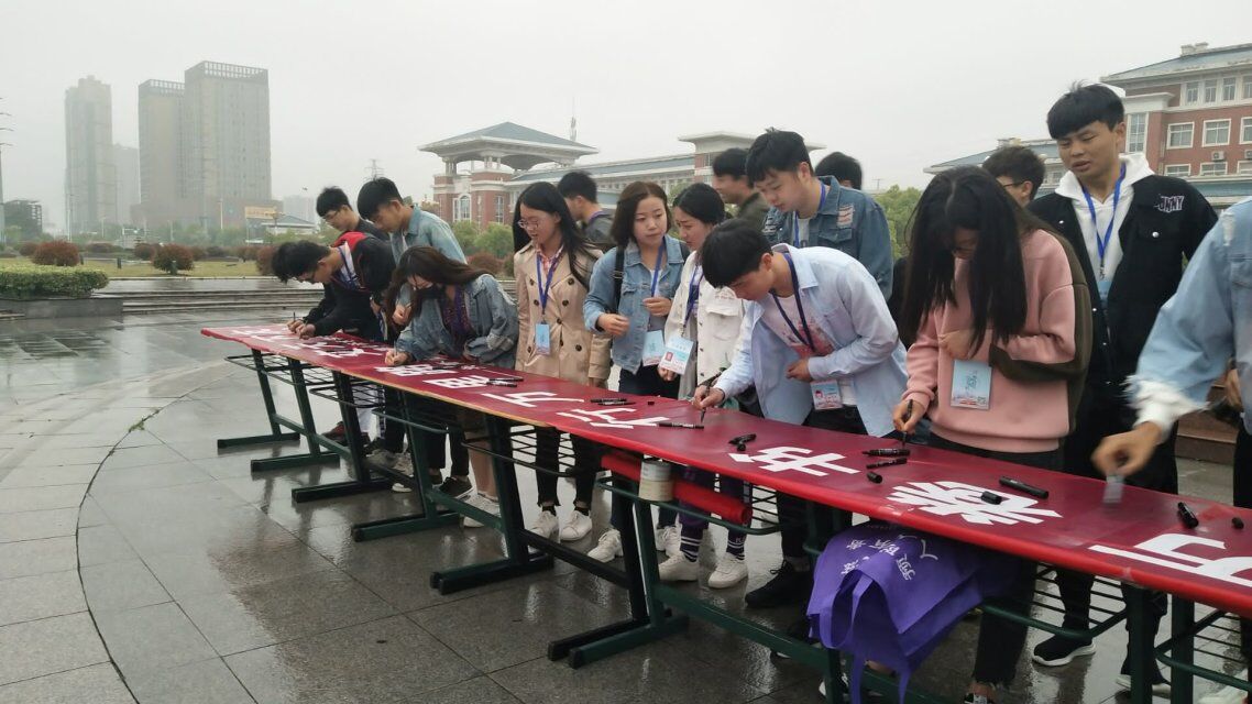 在庄严的国歌声中,五星红旗缓缓升起。学生代表在发言中表示,书籍是智慧、品格、文明的摇篮,读书是纵领智慧、升华品格、撒播文明的事业。举办读书月活动,就是要让读书成为一种生活态度、一种学习责任、一种理想追求、一种精神境界。他希望让读书的精神扎根在每个人的灵魂深处,能通过书籍,点亮未来,为复兴民族而奋斗。随后,各系部学生代表及学生会全体成员在横幅上签字。